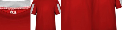 - Contrast color Lycra triple bar-tacked set-in mitered V-neck collar