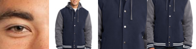 We took the old-school letterman jacket and reworked it in comfortable wool-like polyester with a warm quilted lining. A detachable hood adds versatility.