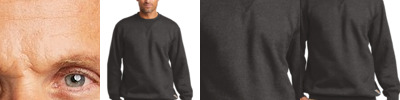 12-ounce, 82/18 U.S. grown cotton/poly fleece 78/23 cotton/poly (Oxford Grey) 66/44 cotton/poly (Charcoal Heather) Reverse Weave cross-grain cut resists shrinkage 1x1 rib knit neck, side panels, sleeve cuffs and hem Embroidered Champion C logo at left cuff Woven back neck label