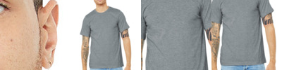 Retail fit Tear-away label Contrast raglan sleeves and neck trim Side seamed Solid Colorblock: 3.6-ounce, 52/48 Airlume combed and ring spun cotton/poly, 40 singles Black Heather: 90/10 Airlume combed and ring spun cotton/poly Marble Colorblock: 4-ounce, 91/9 poly/Airlume combed and ring spun cotton, 32 singles Triblend Colorblock: 3.8-ounce, 50/25/25 poly/Airlume combed and ring spun cotton/rayon, 40 singles
