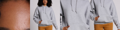 7.4-ounce, 80/20 combed ring spun cotton/polyester fleece 100% cotton face Tear-away label Halfmoon at back neck 1x1 rib knit cuffs and hem Side seamed Front pouch pocket