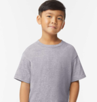 Gildan Youth 4.6 Ounce Softstyle CVC Short Sleeve T-Shirt. 60% ringspun cotton, 40% polyester, 4.6 ounces. Made with our soft ring spun cotton rich blend, softsyle's high stitch density fabric offers a smoother printing surface. Subtle heather texture on all colors except Pitch Black and White. Polyester gives a drapey and soft hand. Narrow width, rib collar. Taped neck and shoulders for comfort and durability. Modern classic fit, seamless body. Recycled, high-performing black tear-away label. CPSIA Tracking Label Compliant. Gildan partners with Better Cotton to improve cotton farming globally. Made with OEKO-TEX certified low-impact dyes. Plastic waste is diverted from landfills annually by the removal of polybags from all products except color white.
