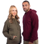 7.6-ounce, 60/40 CVC ring spun cotton/polyester fleece Made with sustainably sourced USA-grown cotton Moisture-wicking Wrinkle-release High stitch density for smooth printing surface Two-ply jersey-lined hood Dyed-to-match drawcords Double-needle coverstitching on neck, armholes and waistband 1x1 rib knit cuffs and hem Front pouch pocket Tear-away label