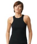 Gildan Ladies 4.6 Ounce Softstyle CVC Racerback Tank. 60% ringspun cotton, 40% polyester, 4.6 ounces. Made with our soft ring spun cotton rich blend, softsyle s high stitch density fabric offers a smoother printing surface. Subtle heather texture on all colors except Pitch Black and White. Polyester gives a drapey and soft hand. Narrow width, rib collar.Taped neck and shoulders for comfort and durability. Modern classic fit, seamless body. Recycled, high-performing black tear-away label.