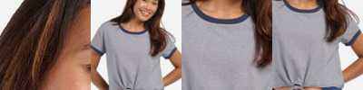 - Contrast trim at neck and sleeve hem