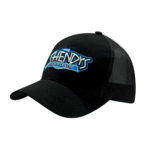 Headwear Professionals Poly Twill Mesh Back Cap. 6-panel structured cap with pre-curved visor with contrast stitching that matches the mesh. Twin hole plastic snap.