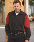 RedKap Adult 4.25 Ounce Short Sleeve Two Tone Crew Shirt. 4.25 oz. Cotton ripstop texture. 65% polyester/ 35% cotton, permanent press. Touchtex technology with superior color retention, soil release and wickability. Concealed, no scratch, button-front placket. Two button thru hex pockets with pencil stall on left front pocket and utility pocket on left sleeve. Straight bottom hem. Ships from Nashville, TN.
