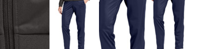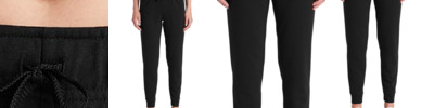 A flattering, moisture-wicking jogger with an adjustable drawcord waistband to accommodate a wide variety of body types. 7.1-ounce, 75/13/12 poly/cotton/rayon with PosiCharge technology Adjustable elastic interior waistband with exterior drawcord Tear-away removable label Front pockets 1x1 rib knit cuffs